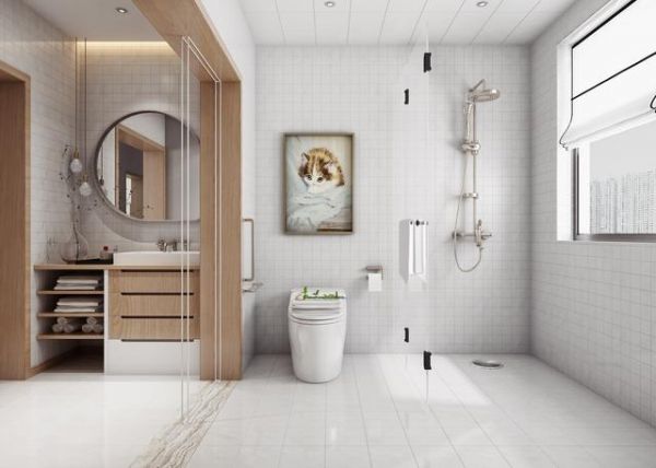 卫生间各功能区划分合理,洗漱、沐浴两不耽误。白色小方砖的设计清爽美观,百看不厌。带收纳浴室柜收好你的浴室用品,让贪玩的猫主子没有可乘之机。智能全屋除毛器,彻底解决猫毛满天飞的小烦恼。