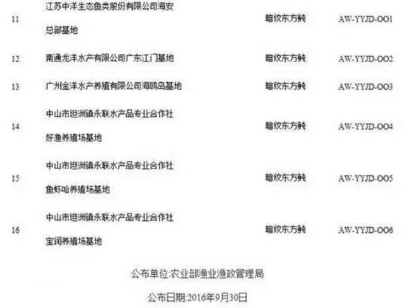 第一批通过审核的养殖河鲀加工企业名单