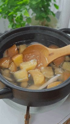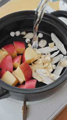 这种养生的汤汤水水,想要味道好,就得加点水果进去。苹果、雪梨,你们按照自己的口味来加。