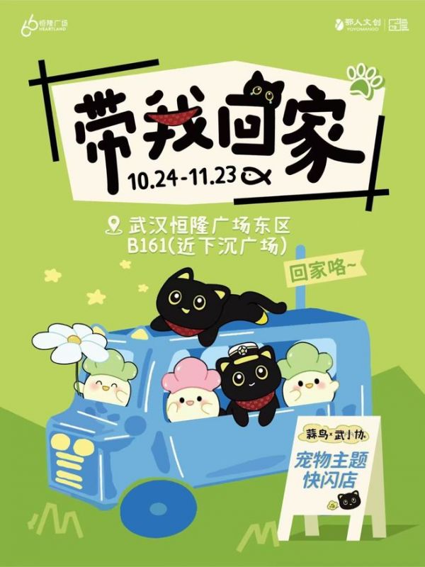 备受期待的“带我回家”蒜鸟X武小协宠物主题快闪店于2025年10月24日正式登陆武汉恒隆广场,并将持续至2025年11月23日。这场由鄂人文创与武汉市小动物保护协会(简称:武小协)首次跨界打造的公益快闪活动,以“关爱流浪动物,助力公益守护”为核心,通过萌宠IP、限定产品与沉浸式体验,为城市注入温暖治愈的公益力量。快闪店位于恒隆广场负一楼B161(近下沉广场),诚邀市民共赴一场“萌宠+公益”的双向奔赴。