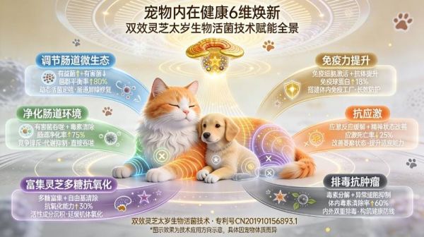 全球首个基于太岁共生发酵的动态活菌营养引擎,让宠物自主合成灵芝活性成分,最终落地为以下 6 大肉眼可见的健康焕新效果,为宠粮提供强说服力营销素材。