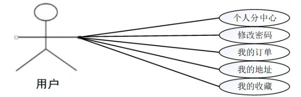 用户模块:用户登录后可以对个人中心、修改密码、我的订单、我的地址、我的收藏等功能进行操作。用户用例如图3-3所示。