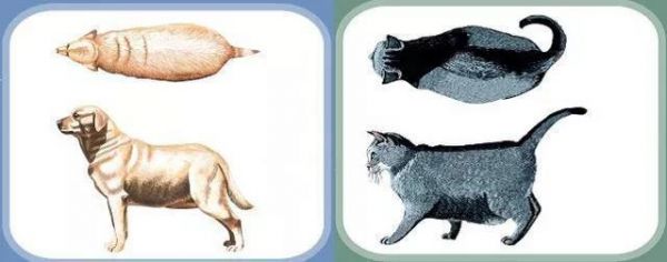 因宠物的体型、品种差异,一般不通过体重而通过体态来判断是否过重,西方比较通用的评判标准是BCS即体况得分(Body Condition Score)。
