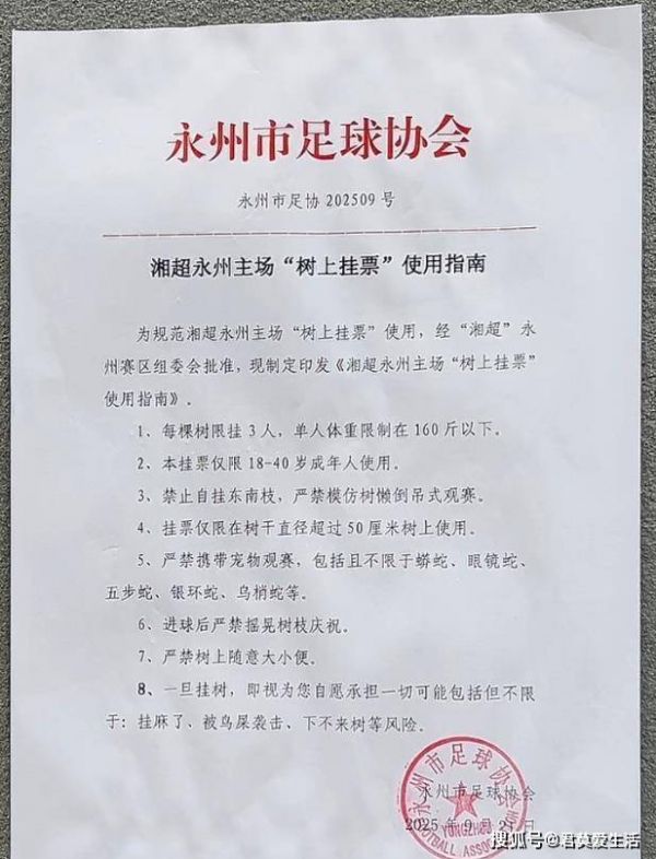 “湘超”永州主场热度爆棚!官方推“树上挂票”,每树限3人且限重160斤以下