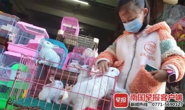 随着农历新年越来越近,广西花鸟市场里人头攒动。宠物店门口稳坐“C位”的兔子,引得行人停下脚步围观。