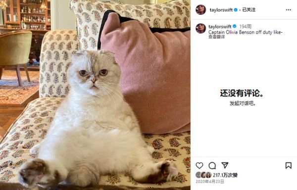 而这的主要依据主要是Olivia Benson在ig的受欢迎程度来估算潜在收益,毕竟霉霉本人随便发一张晒猫贴就能引来百万点赞,而Olivia Benson的人气则是其中最高的一只。