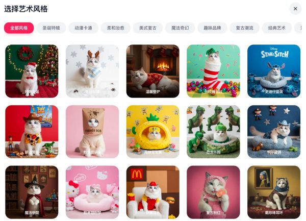 只需要几秒就可以生成宠物的专属写真,多种主题风格随意切换。