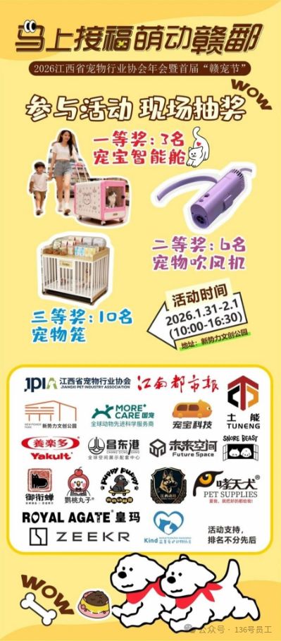 福利满满,活动期间,每个整点都将上演激动人心的抽奖环节,奖品从实用的宠物笼到高科技的宠宝智能仓应有尽有。更令人期待的是现场推出的神秘宠物盲盒,里面藏着各种惊喜好礼,只等您来解锁。