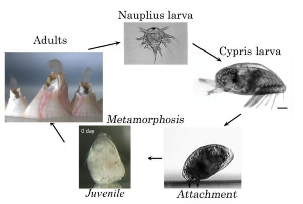 此时的藤壶是自由的,它用刚毛来运动,而这一阶段的主要任务就是寻找最合适的固着点。