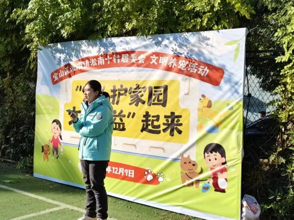 为破解社区养宠管理难题、融洽邻里关系,近日,宝山区淞南镇十村居委会以“‘宠’护家园 文明‘益’起来”为主题,组织开展了一场寓教于乐的文明养宠新时代文明实践活动。活动吸引了辖区内众多养宠居民积极参与,保安大哥与快递小哥代表也跨界参与、助力宣传,传播文明理念,共同营造和谐宜居的社区环境。