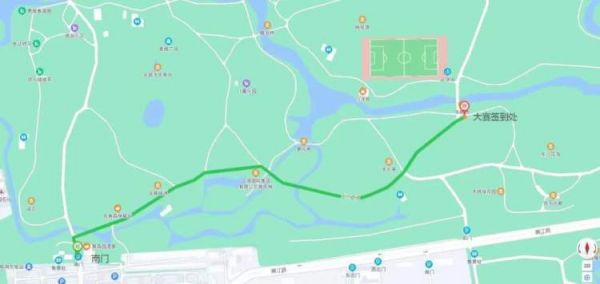 比赛队伍按照错峰要求分批从共青森林公园南门(嫩江路228号)进园。根据现场指引路牌前往足球场右侧大草坪签到处,领取徽章,核验24小时核酸、健康码绿码、行程卡,配合测量体温,由每队队长抽取随队观察员。