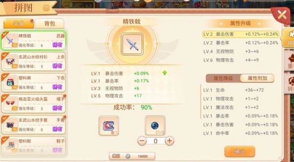 拼图系统共设四个等级,分别对应1至20级,每级涵盖五个等级区间。属性种类多达十三种,包括生命、双攻、双防、暴击、暴伤、命中、闪避、无视双防、暴击抵抗及暴伤抵抗等。玩家可通过商城购买或利用生活技能自行制作获取拼图,后者尤其适合热衷资源积累的玩家。想要高效运用该系统,关键在于合理搭配与强化。当获得理想装备后,可前往强化界面中的重铸功能,使用拼图重铸卷轴(可通过每日历练获取或在商城购得),将装备属性重新洗练为所需属性池中的数值。目前每件装备最多可拥有三条基础属性加一条额外属性,合理规划才能最大化战力提升。