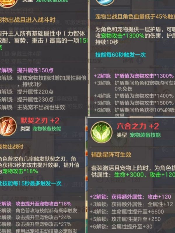 当角色血量较低时,为其施加相当于宠物攻击1200%的护盾,保护效果显著。