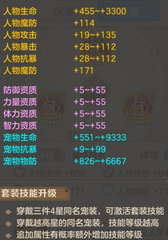 宠物参战时,提升角色基础属性中最高的一项100点。