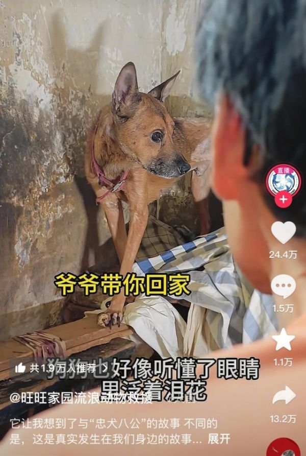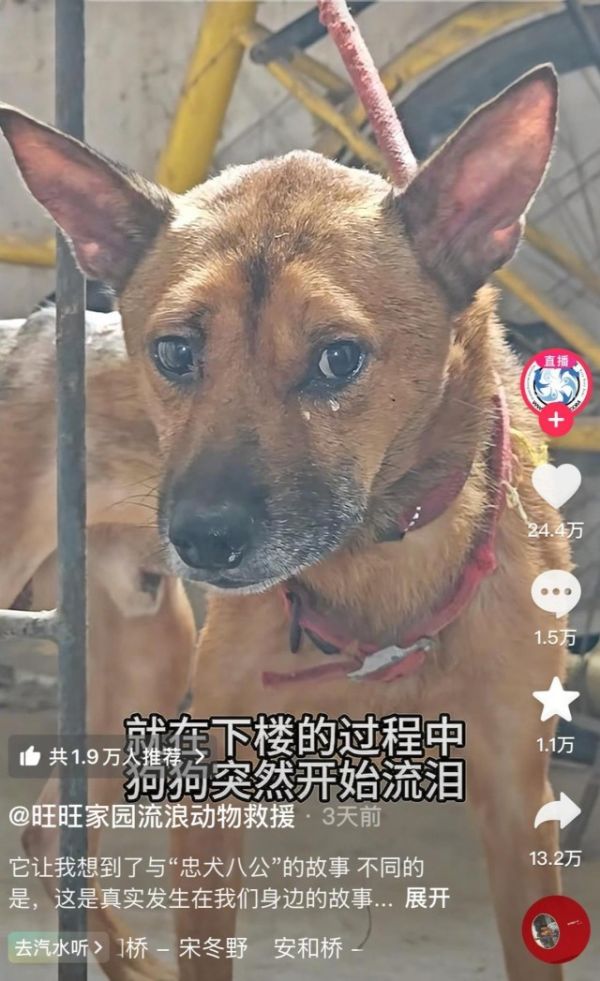 旺旺家园流浪动物救援账号发布的视频中,这只狗被带走时在落泪,感动网友,不过也有网友质疑该视频是摆拍。对此陈先生表示,视频不是摆拍,在下楼梯时狗曾往回走了几步,他们也一直在拍摄记录过程,才拍下了这一幕。“这是我第二次看到狗流泪。”陈先生称。