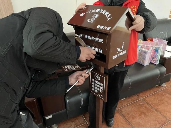 近日,奉浦六居文明养宠自治系列活动——宠物拾便箱安装活动顺利开展。活动现场还有来自《奉浦六居爱宠志愿者群》热爱小动物小朋友家庭,一同为缓解社区宠物不文明排泄问题献出自己爱的力量。