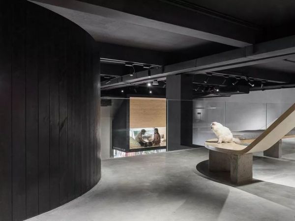 由等高线生成的巨型梯田贯穿整个一层空间,既改善了人、猫与空间的关系,又灵活适用于各种猫主题活动的举办。设计师以叙事性的方式将抽象化的梯田,河流,水纹,树屋等概念在空间中层层递进。