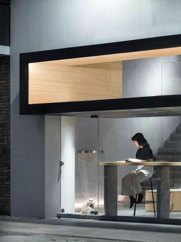 基于猫的喜高习性,设计师打造了一个半层的视野平台,在室内外之间嵌入了一个悬挑的空中树屋,独特的斜顶结构同时满足人和猫的行为尺度、视觉感受。