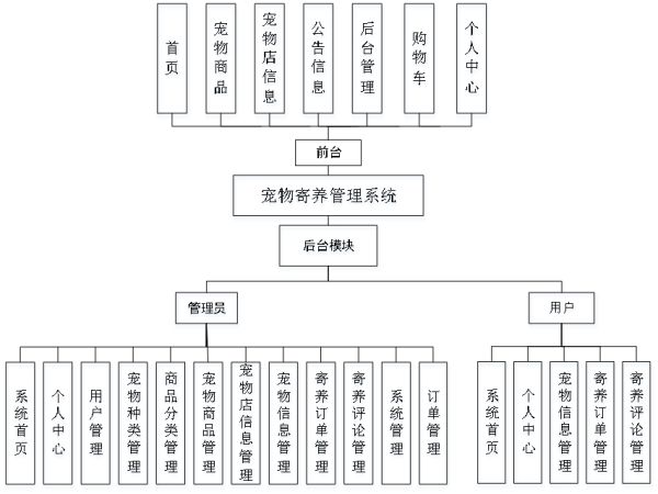 构图是系统的体系结构,体系结构是体系结构体系的一部分,体系结构体系是体系结构体系的重要组成部分。宠物寄养管理系统的整体结构设计如图4-2所示。