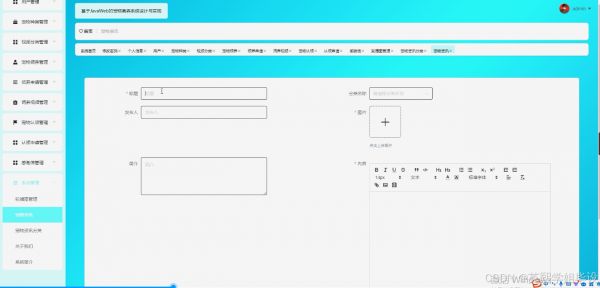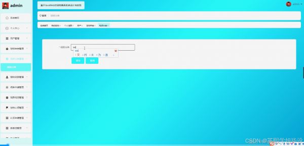 环境搭建安装JDK 1.8,配置环境变量。安装Maven 3.3.9,用于依赖管理和项目构建。安装Tomcat 7.0,作为应用服务器。安装Eclipse或IntelliJ IDEA作为开发IDE。数据库设计使用MySQL 5.7设计数据库模型。创建数据库表,定义索引以优化查询。编写SQL脚本,用于数据库的初始化和迁移。项目初始化使用Maven创建项目骨架,定义项目结构和依赖。配置pom.xml文件,添加所需的依赖库。后端开发初始化Spring Boot项目,配置应用属性。集成Spring框架,实现依赖注入和事务管理。使用MyBatis作为ORM工具,编写数据访问对象(Mapper)。开发业务逻辑层(Service)和控制层(Controller)前端开发设计前端页面布局,编写HTML和CSS。使用JavaScript或Vue.js实现前端逻辑和动态效果。集成Vue.js框架,构建单页应用(SPA)。程序界面:
