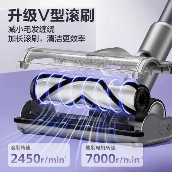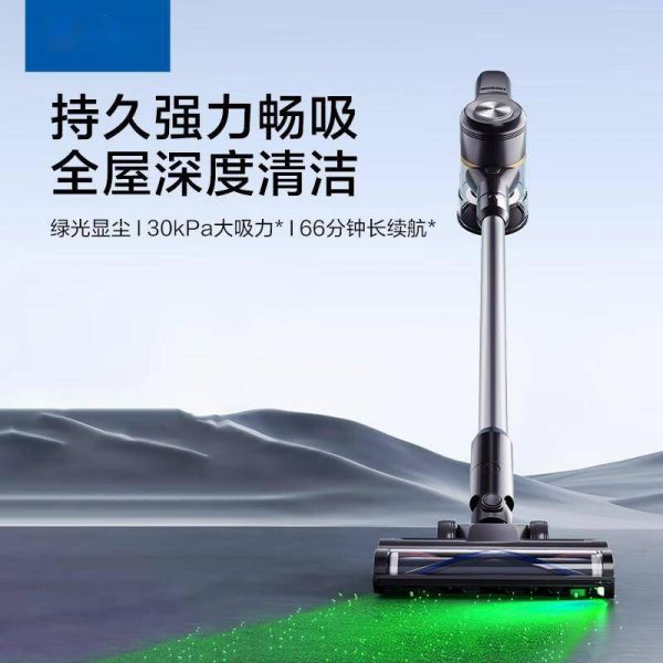 绿光显尘技术:地面微尘在LED绿光照射下清晰可见,连透明碎发都无所遁形 防缠绕设计:专利梳齿结构滚刷,长发、宠物毛一吸即净不缠绕 220AW飓风吸力:地毯深层螨虫、缝隙积灰都能连根拔起