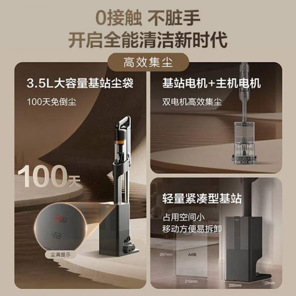 对于讨厌频繁清理尘盒的用户来说,海尔HF3带来的自集尘技术堪称解放双手的“黑科技”。它的基站能自动将吸尘器收集的灰尘压缩到密封袋中,60天内只需更换一次集尘袋,彻底告别扬尘二次污染。