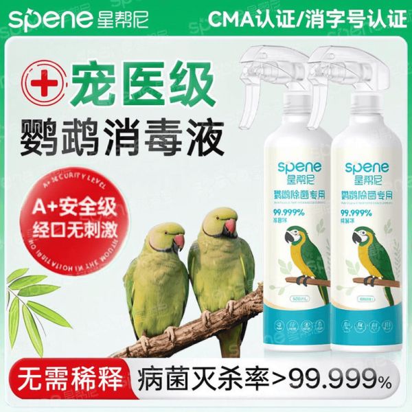 1️⃣ 专业兽医背书,安全可舔食 2️⃣ 广谱杀菌,有效预防常见鸟类疾病 3️⃣ 快速分解异味,保持鸟笼空气清新使用时只需按比例稀释,喷洒在鸟笼、站架等物品表面,无需冲洗,自然风干即可。特别适合定期清洁和疾病预防期使用,是守护爱鸟健康的第一道防线。