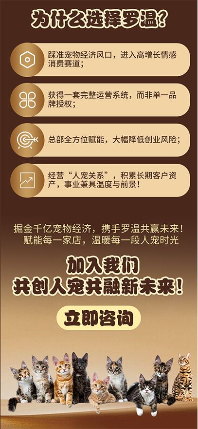 选择与罗温同行,意味着进入一个充满温情与前景的朝阳行业,更意味着获得一个可降低创业风险的系统性解决方案。它不鼓励孤军奋战的冒险,而是提供如同“航母护航”般的全程赋能。对于心怀热爱、看好宠物经济未来的创业者而言,罗温不仅仅是一个加盟品牌,更是一个共同探索人宠美好生活、经营长期价值的可靠伙伴。在这条赛道上,罗温正尝试书写的,是关于陪伴、品质与商业可持续性的新故事。