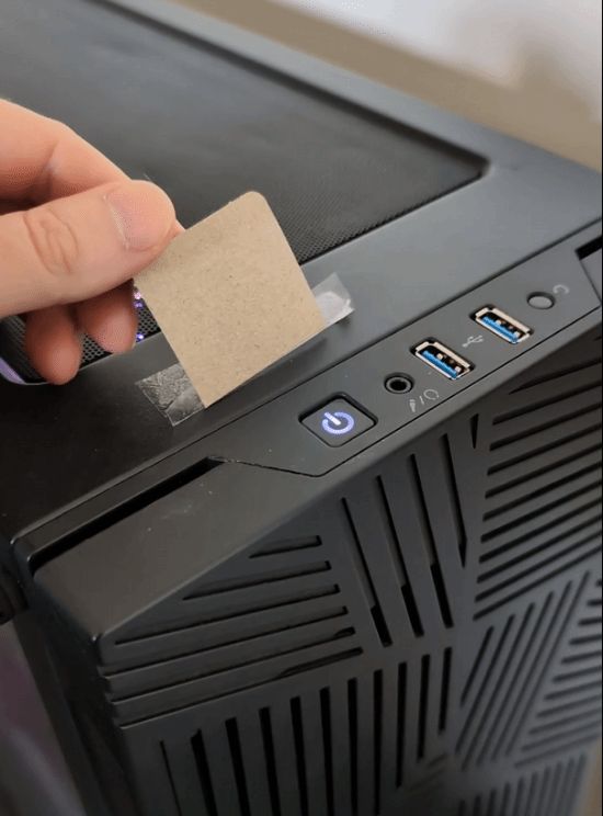 一名 Reddit 网友 Shmikken 就分享了自己的居家解决办法,他因自家猫咪频繁误触电源键关掉电脑,想出了一个应急妙招:用胶带将一小块硬纸板粘在电源键旁,制作出一个简易的遮挡挡板,刚好能盖住电源键。这一手工防护装置能有效避免猫咪在主人玩游戏时误触关机,不过该网友也坦言,自己打算后续更换一个更耐用的防护配件,这个纸板挡板只是临时方案。