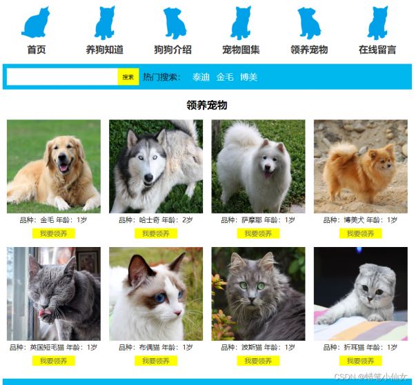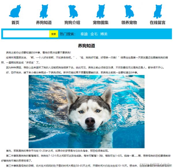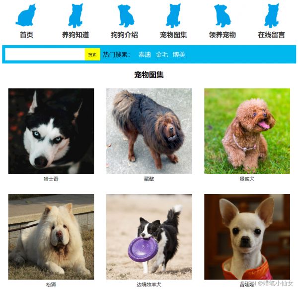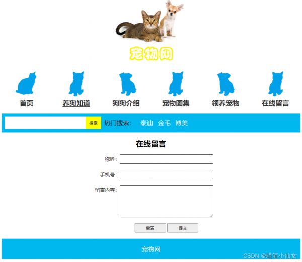 本文以“宠物”为主题设计,应用html5+ss3,DIV、点击事件、留言板等,供大家参考。本网页支持如Dreamweaver、HBuilder、Text 、Vscode 等任意html编辑软件进行编辑修改;支持包括IE、Firefox、Chrome、Safari主流浏览器浏览。