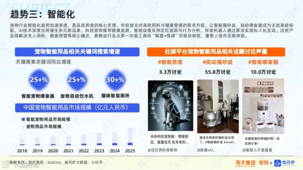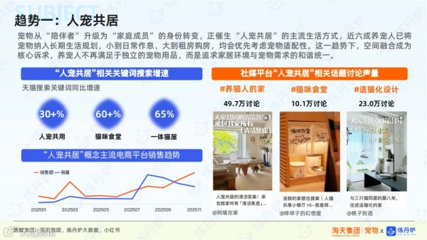 消费决策逻辑由“口碑驱动”转向“成分与科技驱动”;消费场景从单一宠物用品,延伸至“人宠共生空间”;营销方式从广覆盖转向深度内容种草。
