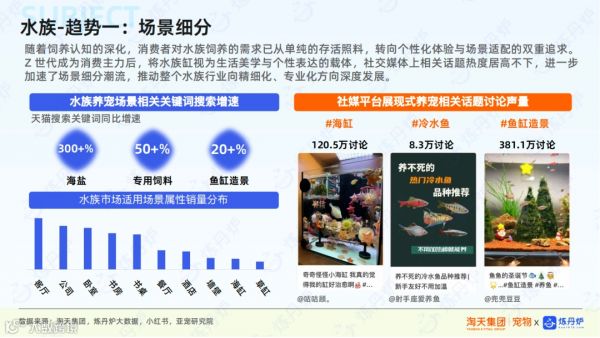 Z世代成为主力消费人群后,水族缸被赋予生活美学与个性表达意义。消费者不再满足于基础存活照料,更追求个性化体验与场景适配,社交媒体话题热度助推行业向精细化、专业化纵深发展。