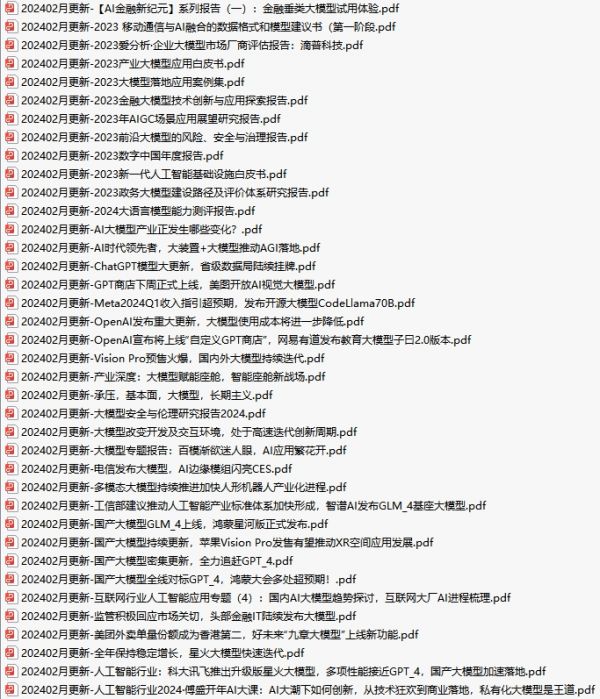 这里主要整理了大模型相关PDF书籍、行业报告、文档,有几百本,都是目前行业最新的。
