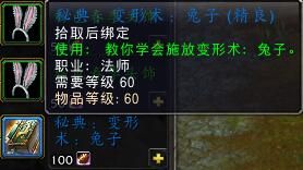【变形术:兔子】:法师专属的变形术技能书,只有法师打开商店才能看见,不可交易,售价100巧克力: