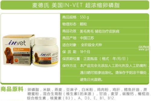 美国麦德氏 In-vet专业医护营养系列 犬用超浓缩卵磷脂 550g均为美国麦德氏官方授权【正品】宠物用品用具。