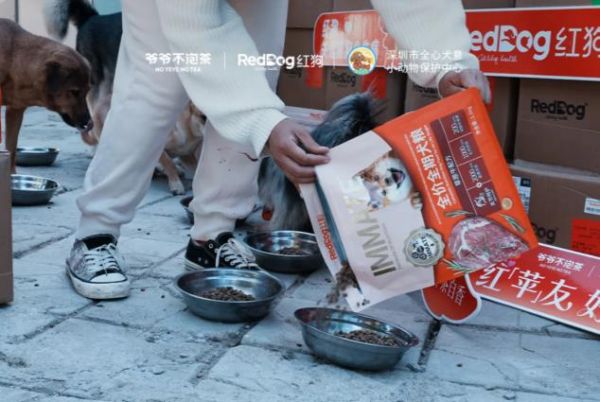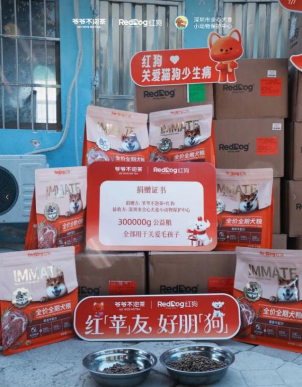 ▲图释:爷爷不泡茶品牌与红狗推出“爱心捐粮”活动
