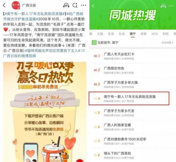 活动中,一个坚持流浪动物救助17年的“南宁流浪猫”团队故事被广泛传播,引发了社会对流浪动物保护工作的关注与支持。这种故事化传播让公益项目更加鲜活、更具感染力,激发了大众的共情能力。