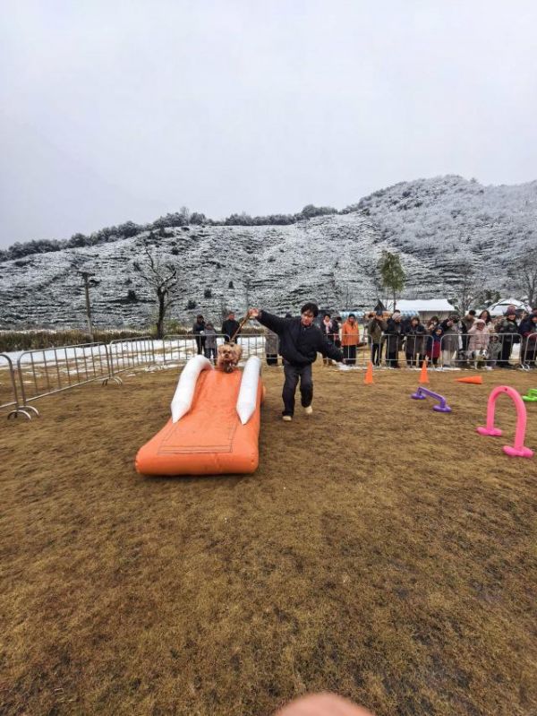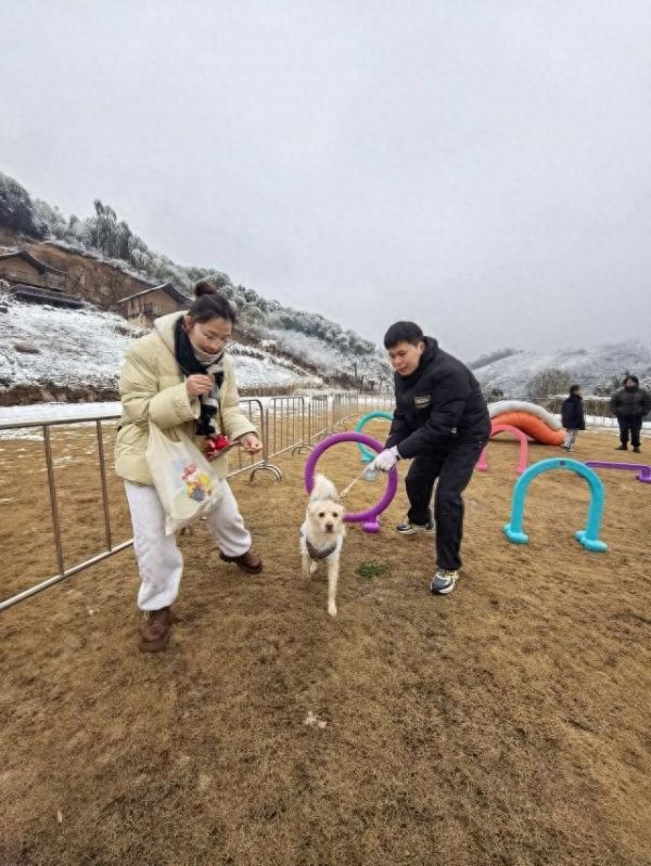 “我们的‘土豆’今天表现很好,只用20秒就完成了比赛。”带着宠物前来参赛的游客常茜然开心地说,轻松有趣的赛事不仅让“毛孩子”尽情撒欢,也让大家在乡村美景中放松身心。