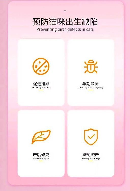 叶酸是孕期营养中至关重要的一环,尤其对胎儿的健康发育有着的作用。我们的宠物孕期营养补充剂特别强化了叶酸的含量。充足的叶酸摄入能有效预防胎儿神经管缺陷,促进胎儿大脑和脊髓的正常发育,是保障新生幼宠智力和身体健康的关键。