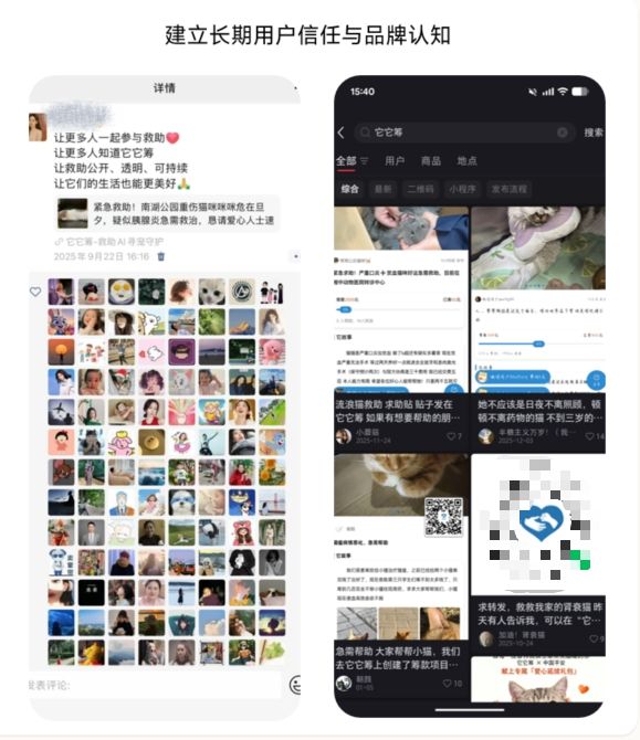 “它它筹”项目由创始人黄兴华及其团队于2025年5月萌发构想,并于同年6月迅速投入产品研发与市场布局。团队核心成员兼具深厚的技术背景、产品运营能力以及对动物福利事业的长期关注,这为平台的快速起步奠定了坚实基础。在不到半年的运营时间内,平台已累计完成超过2300例宠物救助案例,初步验证了其商业模式与社会价值的可行性。平台在发展过程中,始终将建立社会信任作为核心挑战,并通过持续优化流程与机制来应对这一关键问题