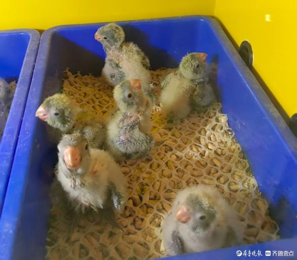 以和尚鹦鹉为例,这类鹦鹉母性较弱,往往需要人工介入孵化环节。在恒温恒湿的智能孵化箱中,37℃的精准控温与40%-50%的湿度调节,如同为胚胎打造了一座“生命宫殿”。经过20余天的静默等待,雏鸟破壳而出。“刚出生的雏鸟仅有蒜瓣大小。”孙玉国说,从破壳到断奶的70天,是人工喂养的关键期。人工喂养需用专用软管将鹦鹉奶粉送入雏鸟嗉囊,每2小时一次的喂食节奏从早上6点持续到晚上10点。断奶后,随着鹦鹉的成长,饲料配比也需随之调整,精心配比,确保每个阶段都能获得最适宜的营养支持。