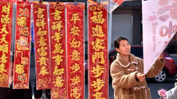 2月12日,市民在河北省邢台市南和区和阳镇年货集市选购节庆饰品。春节将至,各地群众选购节庆饰品和年货,迎接新春佳节的到来。春节将至,各地群众选购节庆饰品和年货,迎接新春佳节的到来。