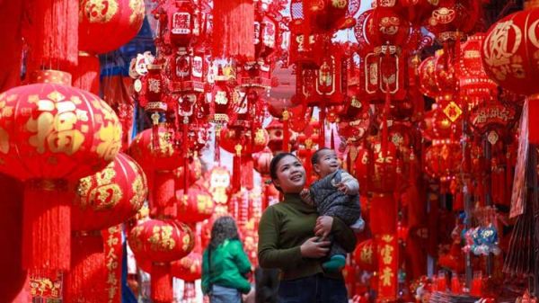 2月12日,市民在河北省邢台市南和区和阳镇年货集市选购节庆饰品。春节将至,各地群众选购节庆饰品和年货,迎接新春佳节的到来。春节将至,各地群众选购节庆饰品和年货,迎接新春佳节的到来。