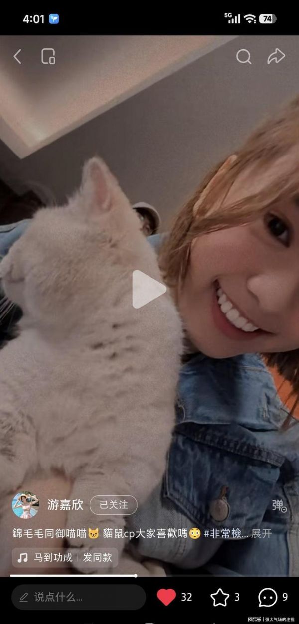 游嘉欣晒出自我最新视频——这是我与宠物的一份亲密互动