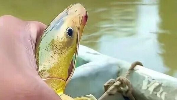 这不是黄辣丁!广东男子钓获金黄色怪鱼,全身像镀了24K金,真相是一种冷门鲶鱼