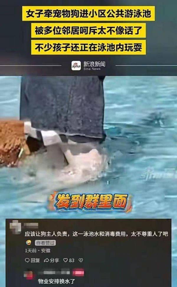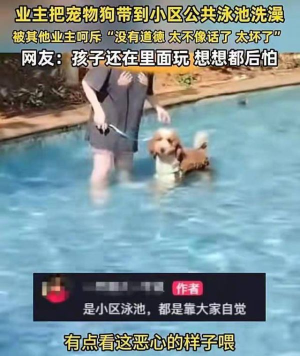 女子在小区泳池给宠物狗洗澡,被其他业主指责还倒打一耙,网友:必须赔偿