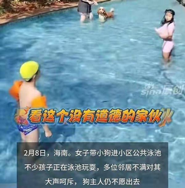 这不!2月8日,在海南三亚的一小区里,有一名女子直接将自己的宠物狗带到小区的游泳池里,她就这么当着所有人的面在游泳池里给狗狗洗澡。