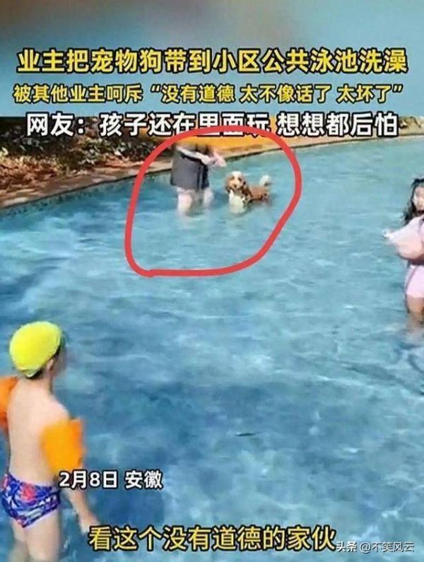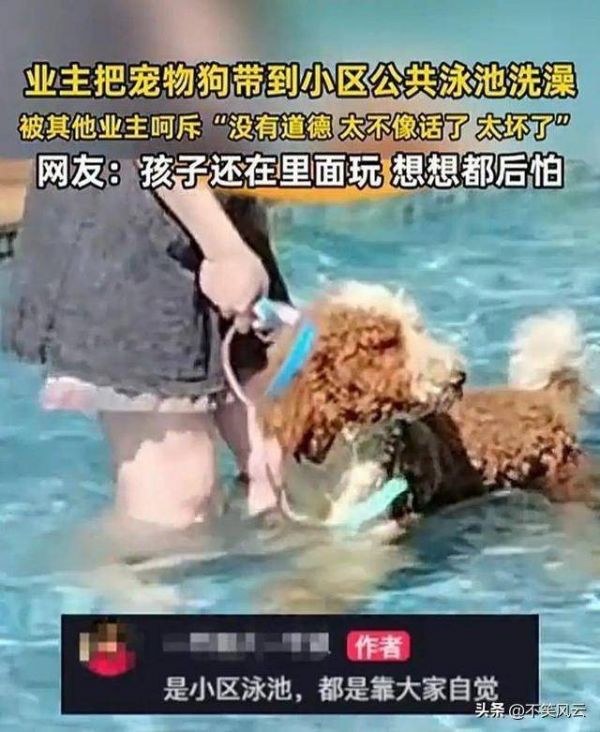 “公共泳池是全体业主共用的,不是你家宠物的澡堂子,太没公德心了!”