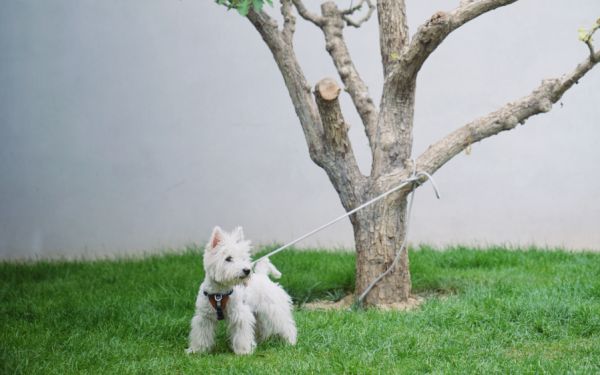 ▲资料图:宠物狗在树下。新京报记者 薛珺 摄