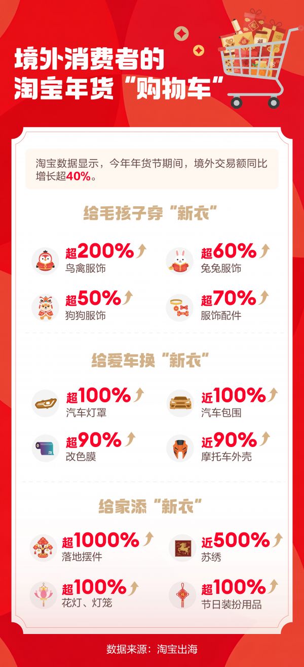 淘宝出海年货节销售额增长超40% 宠物服饰及家居摆件品类大爆发